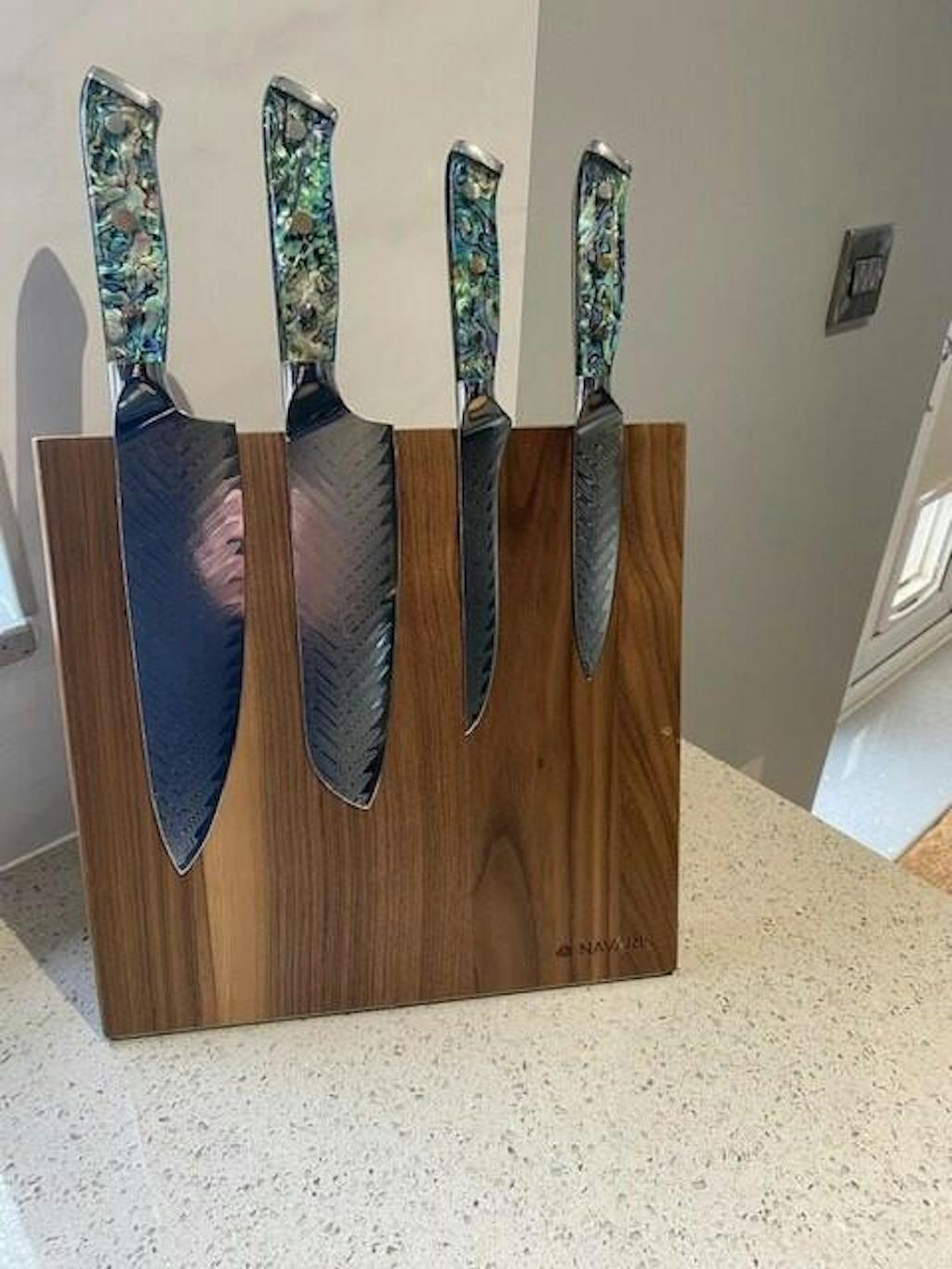 These knives are superb, they look awesome and are so sharp, they look great on my new wooden magnetic block which shows off these wonderful handles and blades, I hope I can keep them as sharp as they are now. Fantastic quality