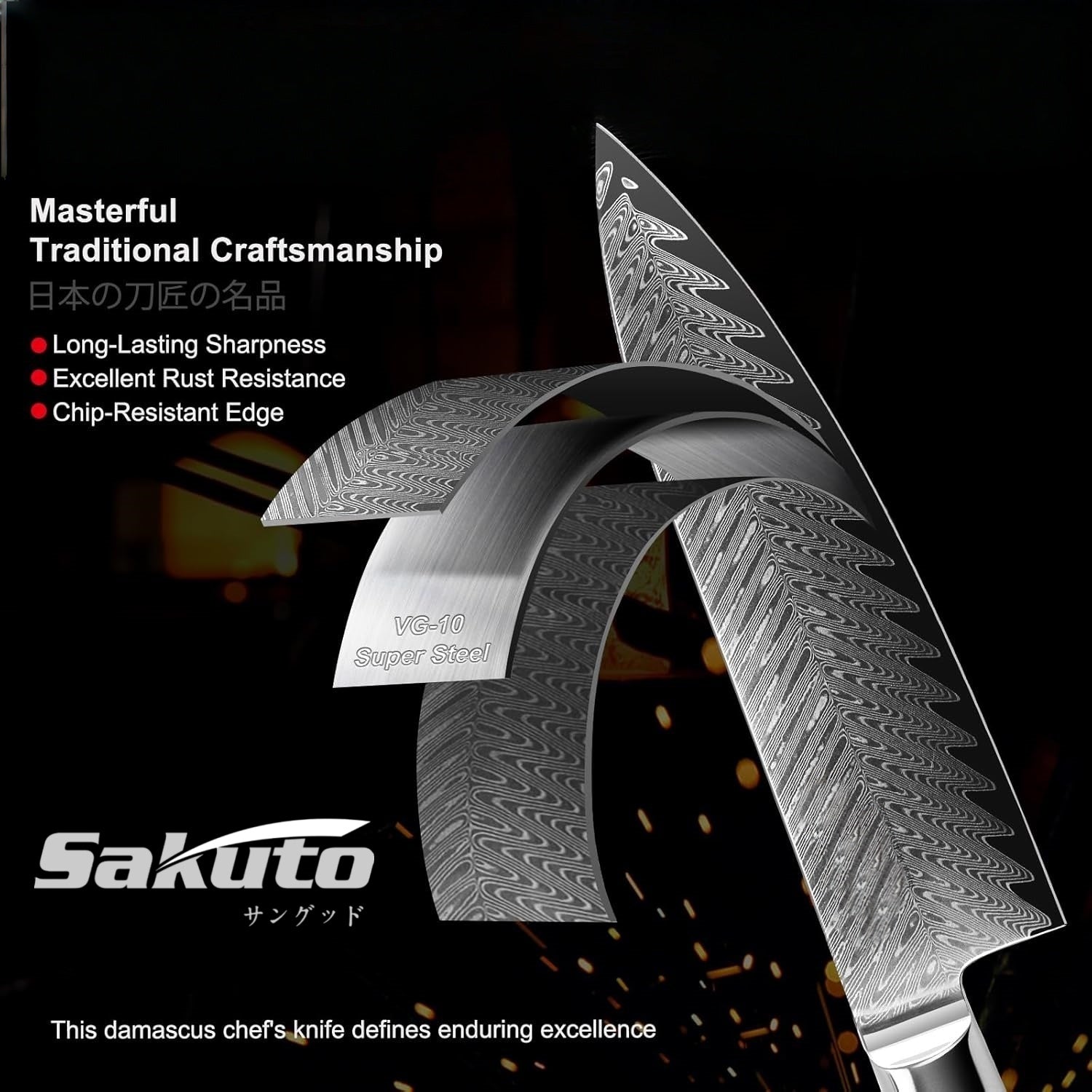 Sakuto Japanese Knives Chef Knife Set Best Japanese Damascus Knives Ultra Sharp